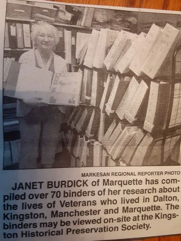 The Binders contain names, pictures and military history of Local area Veterans who have Proudly Served our Country. The information in them is constantly being updated. Please feel free to correct any information that you know is not correct. We would be happy to add to the information. Just stop by or email us with the information and we can check over it and add it to the binders.